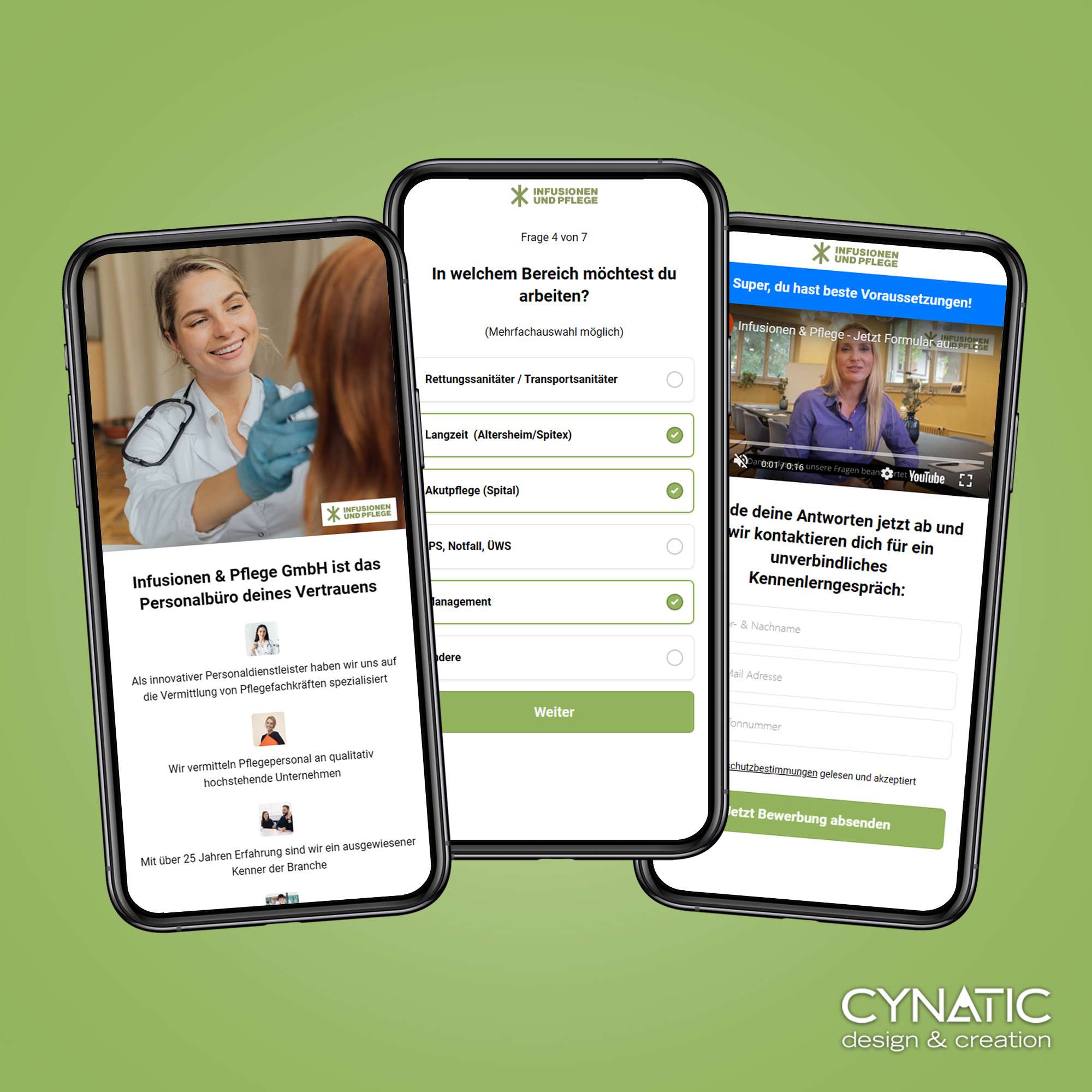 Za posrednika u zapošljavanju Infusionen & Pflege, kreirali smo novi veb izgled. Pored opšte glavne stranice, napravili smo specifične landing stranice prilagođene pojedinačnim uslugama. Osim modernog dizajna i korisničke prijatnosti veb sajtova, bilo je veoma važno za Infusionen & Pflege i za nas da se precizno obrate tačno odgovarajuće ciljne grupe.